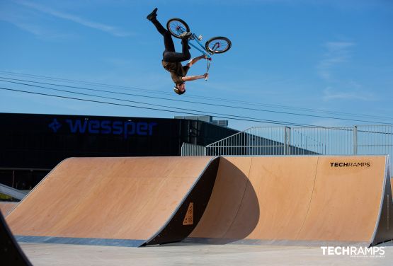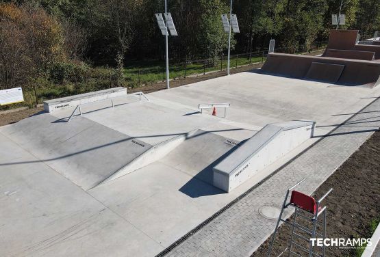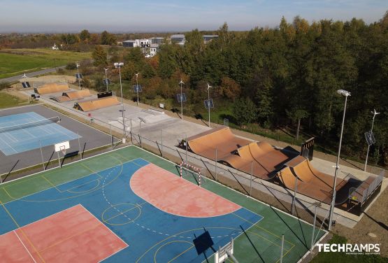 In Rzezawa at Przemysłowa 3 Street, next to the Rzezowianka Stadium, we made the largest modular skatepark in Poland - as much as 968 m2 of surface and nearly 100 m in length! The skatepark was made with Prestiż technology, i.e. covered with waterproof, frost-resistant and non-slip Rampline matting. At the skatepark, in addition to the flying section, there are huge spin ramps and a concrete funbox.