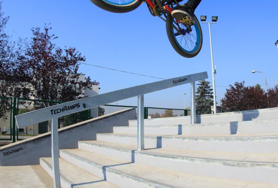 Skatepark in Będzin was designed and built in technology combining monolithic concrete with a wooden element.