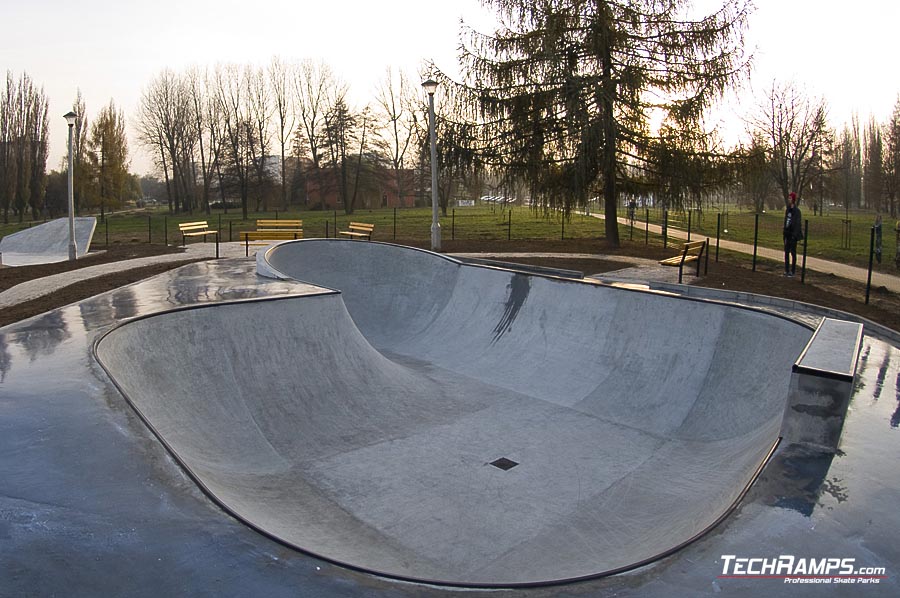 Skatepark made in monolithic concrete technology at one of Krakow's estates - Mistrzejowice. The 21st-century facility allows riders to practice their skills and increase the range of tricks.
