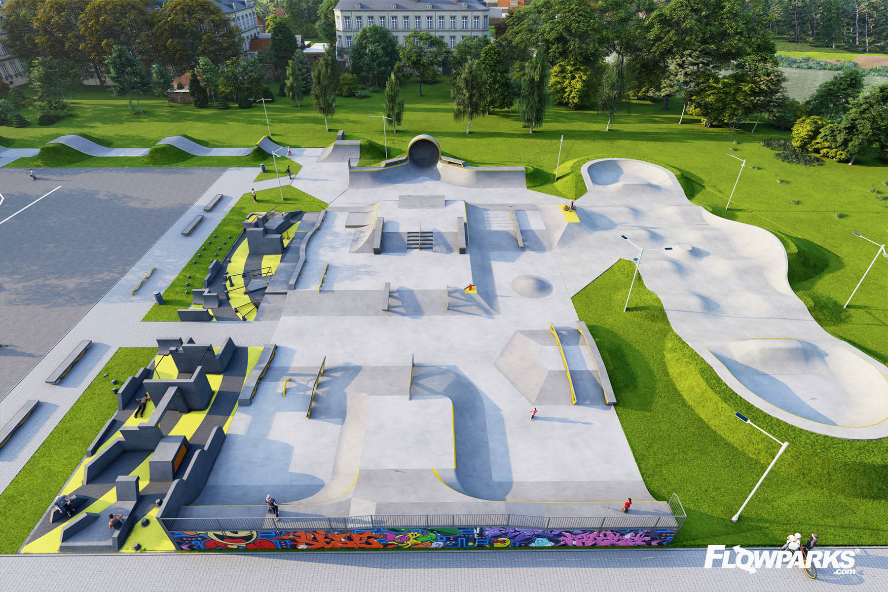 Echa un vistazo al último proyecto de parque de parkour de Flowparks en Minsk Mazowiecki. El complejo también contará con una sección de Pumptrack y un skatepark de Techramps, diseñado por Slo Concept. Además, toda la instalación estará iluminada y habrá una pequeña arquitectura en la zona adyacente al parque. ¡La superficie de toda la instalación alcanza los 2119 m2!