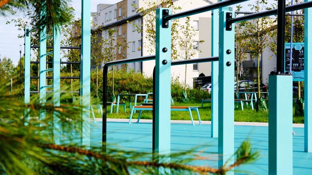 Flowpark Line XL en Złocień - ¡un nuevo lugar para los aficionados al Street Workout! En la calle Domagały, en la urbanización Złocień de Cracovia, se creó nuestra nueva versión Flowpark Line XL, que ofrece excelentes condiciones para el entrenamiento al aire libre. El parque está equipado con una gran variedad de equipos, incluyendo barras, aros y muchos otros elementos que permiten un entrenamiento calisténico completo.