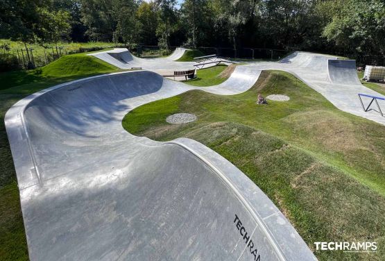 El skatepark tiene una forma inusual y, además, se ha integrado en la vegetación.