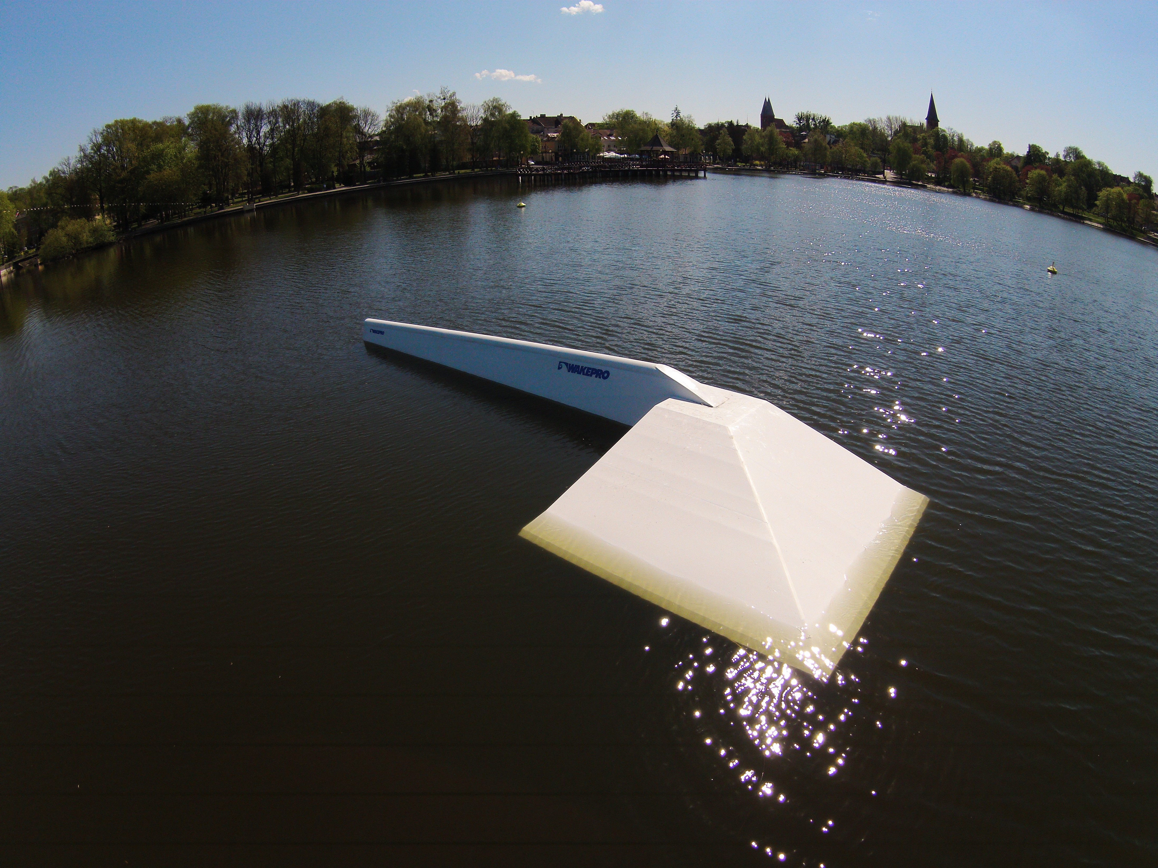 Wakepark is located on the Drwęckie Lake in the center of Ostróda and is equipped with a four-post lift. On the water there are: Kicker M, Kicker L, Rooftop 20m, Butterbox? M, Pipe 20m and Custom Pyramid Pipe. More information about the wakepark can be found at http://ocsir.pl/sport-objects/wyciag-nart-wodnych/