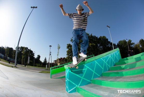 Скейтпарк у Зелонці - це поєднання бетонної споруди та модульної рампи Vert Ramp. Робоча поверхня об'єкта становить: 1470 m2. Проект скейтпарку включає: дитячу зону, призначену для наймолодших користувачів, дворівневу чашу, розширену вуличну секцію. У скейтпарку є секція, призначена для користувачів, які бажають розвинути свої навички катання в парку. Завдяки всім секціям і Vert Ramp висотою 3,10 м створено об'єкт, який дозволить користувачам розвивати свої навички в будь-якому парковому виді спорту.